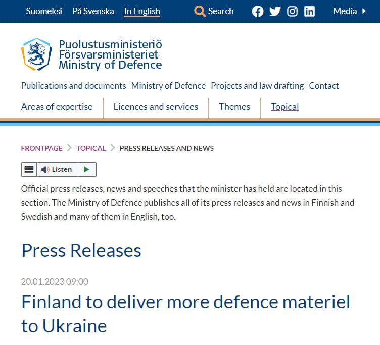 Ранее президент Финляндии Саули Ниинистё заявил, что передаст Украине танки Leopard, но при условии, если будет создан совместный европейский проект по оказанию помощи Украине. Ниинистё отметил, что количество переданной бронетехники не может быть большим, поскольку Финляндия граничит с Россией и ещё не является государством-членом НАТО.