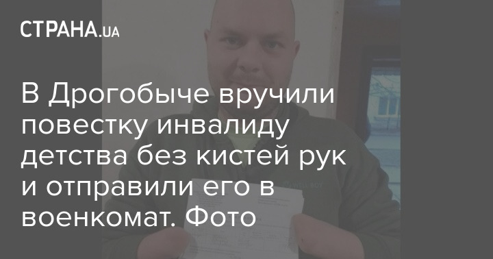 Житель Дрогобыча Львовской области, инвалид детства 1-й группы, у которого отсутствуют обе кисти рук, Руслан Кубай получил повестку и призыв явиться на медкомиссию в военкомат.
