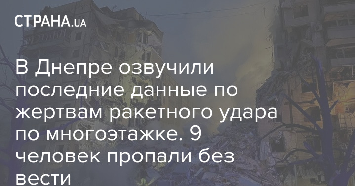 В полиции Днепра озвучили последние данные по жертвам ракетного этажа по многоэтажке 14 января. Погибли 46 человек, идентифицировать удалось только 40. Еще девять человек считаются пропавшими без вести.