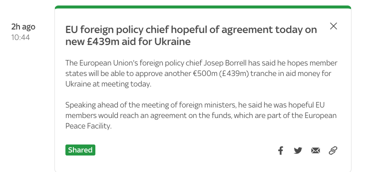 Выступая перед встречей министров иностранных дел стран блока, Боррель выразил надежду, что сегодня удастся достигнуть соглашения о выделении средств из Европейского фонда мира.