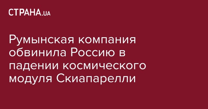 Румынская компания Arca Space обвинила Россию в крушении космического аппарата проекта "ЭкзоМарса" с десантным модулем "Скиапарелли", который потерпел крах во время посадки на Марс. Об этом сообщает Румынское национальное агентство новостей Agerpres.