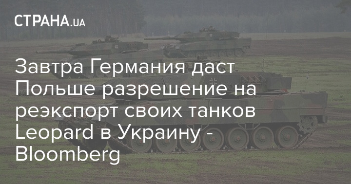 "Ожидается, что уже в среду Германия даст Польше разрешение на реэкспорт своих танков Leopard немецкого производства в Украину", - пишет Bloomberg.