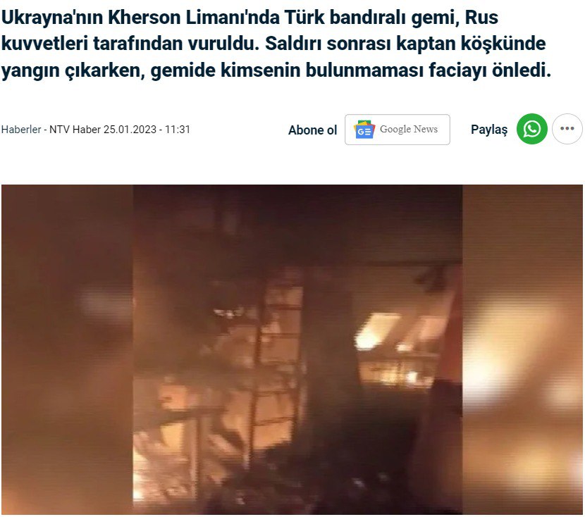 23:07 В порту Херсона россияне попали в судно "Тузла" под флагом Турции.
