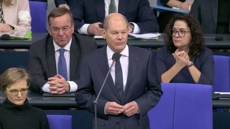 Канцлер Германии Олаф Шольц во время выступления в Бундестаге. Фото: Telegram