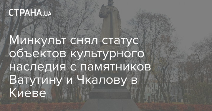 Министерство культуры и информационной политики Украины сняло статус объектов культурного наследия с памятников генералу Николаю Ватутину и летчику-испытателю Валерию Чкалову в Киеве.