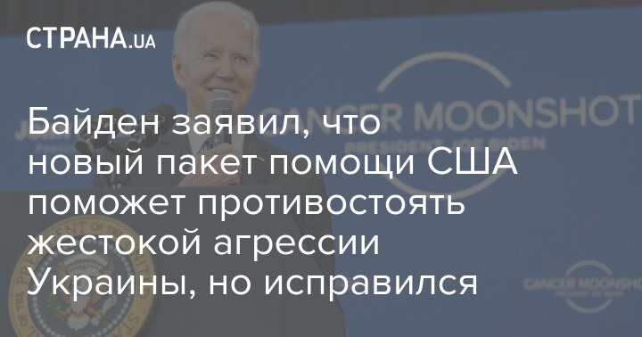 Президент США Джо Байден в своей речи о военной помощи Украине оговорился, заявив, что новый пакет помощи "поможет противостоять жестокой агрессии Украины".
