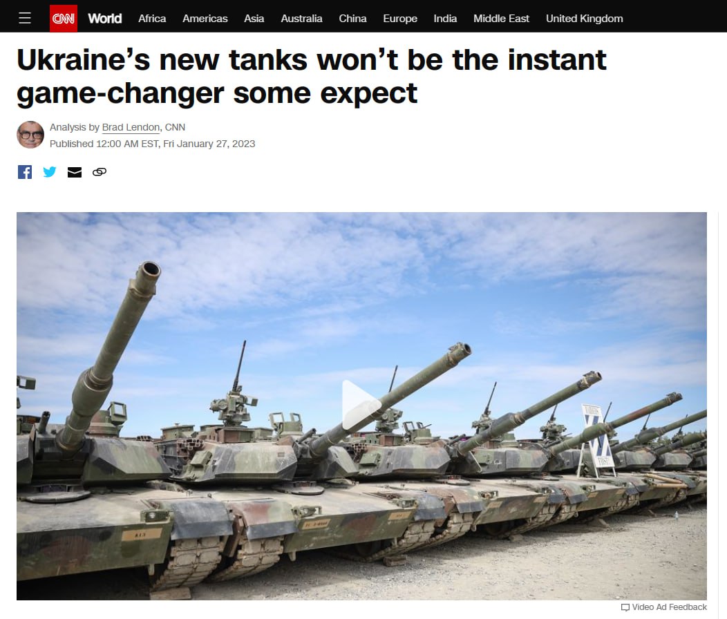 08.27 Еще одно крупное западное медиа - канал CNN - пишет, что натовские танки не окажут немедленного влияния на военную ситуацию в Украине.