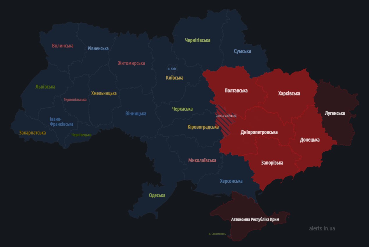 20:35 Воздушная тревога в восточной части страны. Сообщают, что Запорожье и Херсон слышат взрывы.