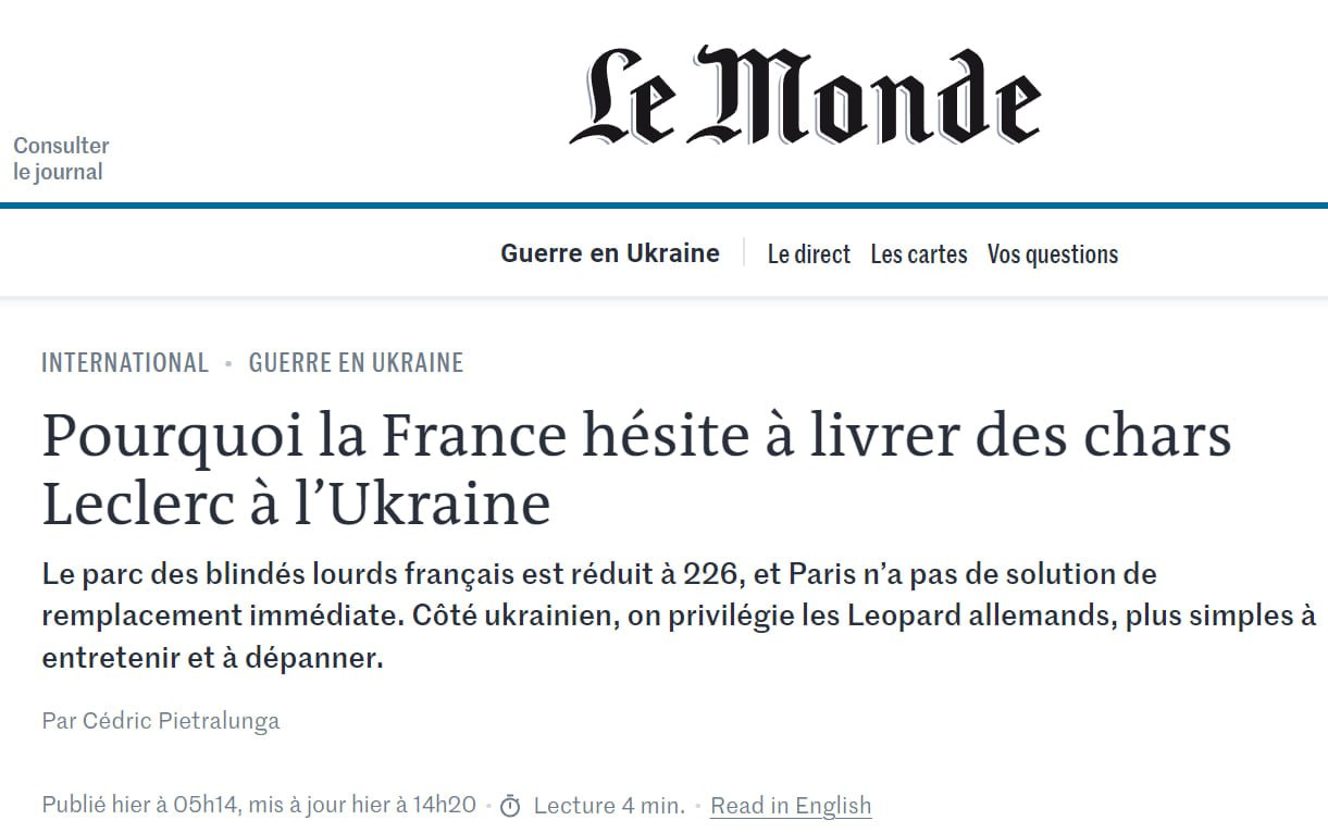 У Франции недостаточно танков Leclerc, чтобы передавать их Украине, эти машины сложны в обслуживании и имеют ряд технических недостатков.