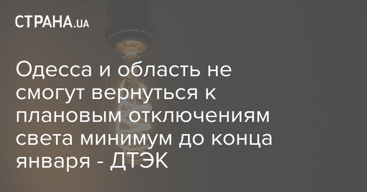 Одесса и область не смогут вернуться к плановым отключениям света минимум до конца января - ДТЭК