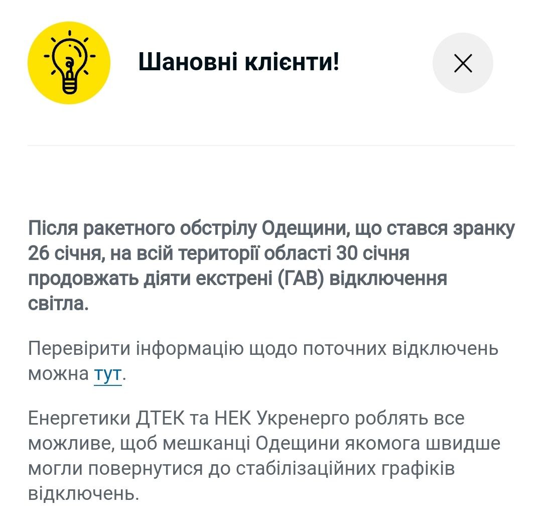 В своем телеграм-канале компания также сообщает, что завтра в Киеве, Киевской и Днепропетровской областях должны быть плановые отключения.