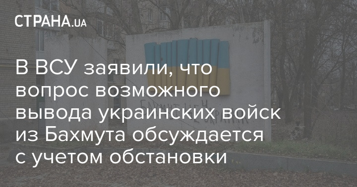 В ВСУ заявили, что вопрос возможного вывода украинских войск из Бахмута обсуждается с учетом обстановки