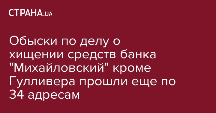 Обыски по делу о хищении средств банка "Михайловский" прошли в "Гулливере" и еще по 34 адресам. Об этом сообщила пресс-секретарь прокуратуры Киева Надежда Максимец на своей странице в Facebook.