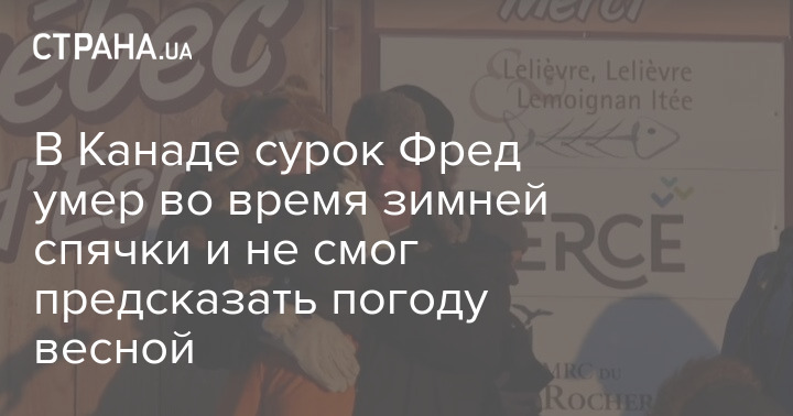 В канадском городке Валь-Дэспуар в провинции Квебек нашли мертвым сурка Фреда, который должен был предсказать приход весны 2 февраля, в День сурка. Организаторам традиционной церемонии на День сурка пришлось быстро искать замену покойнику.