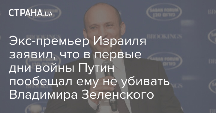Президент РФ Владимир Путин пообещал не убивать президента Украины Владимира Зеленского на встрече с тогдашним премьер-министром Израиля Нафтали Беннетом, которая состоялась в первые дни войны. Путин заверил Беннета: "Я не собираюсь убивать Зеленского".