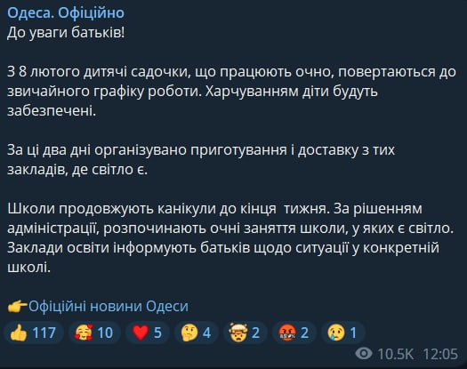 07:46 В Одессе обещают давать свет каждые восемь часов и включать его на два часа. Об этом говорится на сайте ДТЭК.