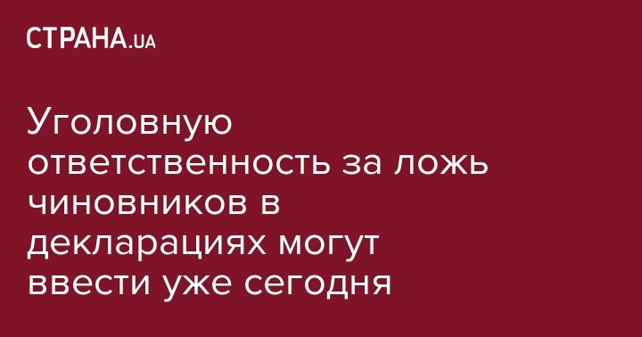 Верховная Рада на пленарном заседании сегодня рассмотрит законопроект №3755 об электронном декларировании доходов чиновников с предложениями Президента Петра Порошенко, согласно которым уголовную ответственность за недостоверные данные предлагается установить за занижение доходов на сумму более 250 размеров минимальной зарплаты (на данный момент - 1378 гривен), то есть 344 450 гривен. Об этом говорится в повестке дня заседания Рады, передают "Украинские Новости".