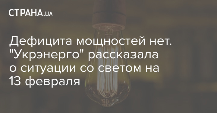 Днем в понедельник, 13 февраля, Украине производство электроэнергии полностью покрывает потребление, а дефицит мощностей отсутствует.