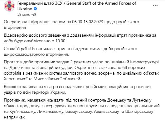В среду, 15 февраля, в Украине идет уже 357-й день войны с РФ.