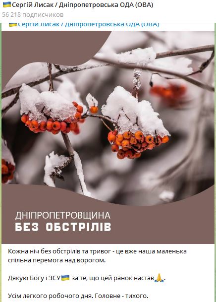 Об этом сообщает глава Днепропетровской ОВА Сергей Лысак.