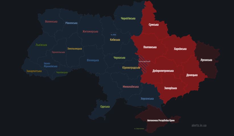 23:25 Воздушная тревога также в Харьковской и Донецкой областях.
