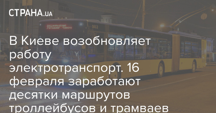 Столица постепенно восстанавливает работу электротранспорта. Завтра, 16 февраля, в Киеве возобновят работу 31 троллейбусный и 13 трамвайных маршрутов.