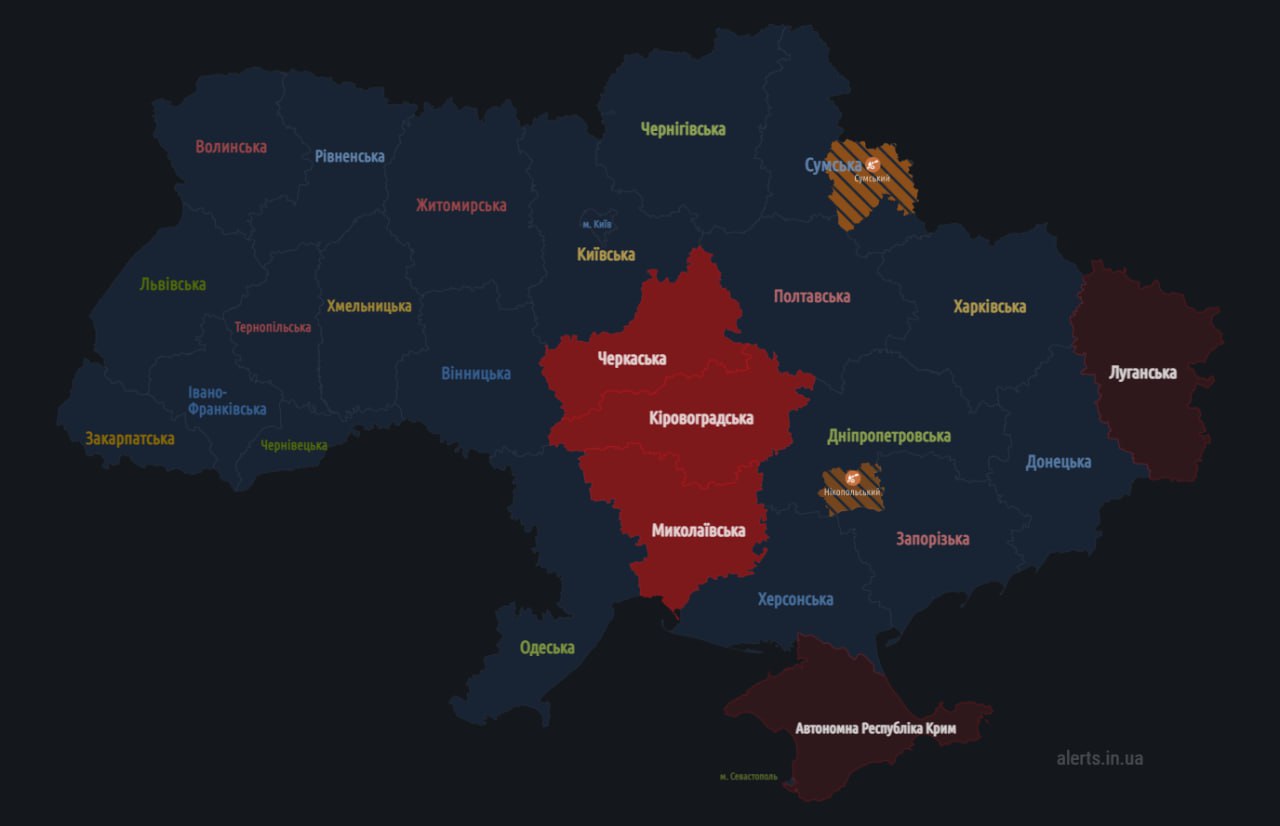 00.00 Воздушная тревога в юго-восточных областях. Также тревога снова в Харьковской области.