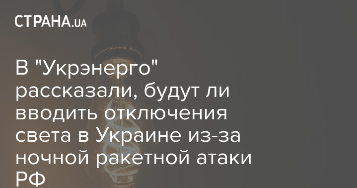 Ночная ракетная атака не вызвала необходимость ограничивать подачу электричества. Дефицита потребления электроэнергии в четверг, 16 февраля, в системе нет.
