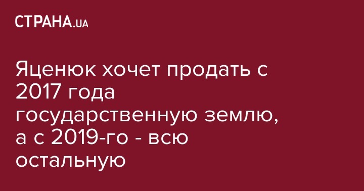 Яценюк хочет продать с 2017 года государственную землю, а с 2019-го - всю остальную