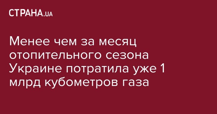 Менее чем за месяц отопительного сезона Украине потратила уже 1 млрд кубометров газа