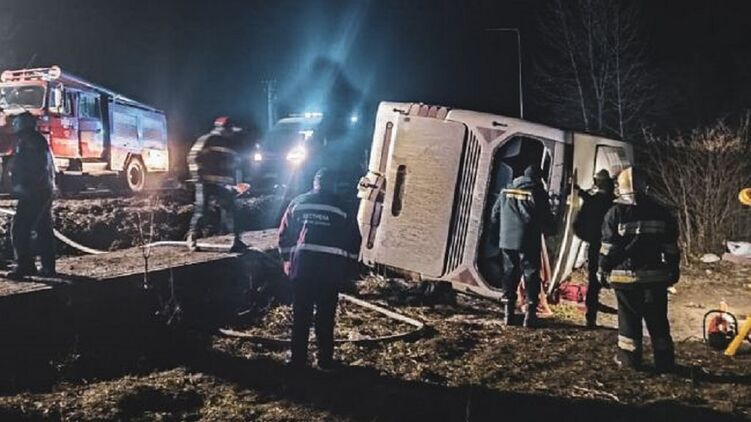 Автобус Буковель-Тернополь перевернулся на трассе Н-18. Фото: facebook.com