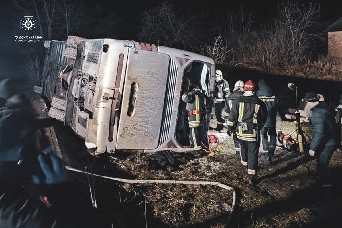 ДТП произошло около 22:26 19 февраля на трассе Н-18 в пределах села Старая Брикуля Тернопольского района. Автобус Neoplan перевернулся на обочину.