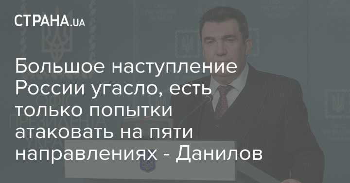 "Словосочетание "большое (наступление)", как они хотели, уже угасло. Большое наступление, как они планировали, оно уже, по их замыслу, длится восьмой или десятый день. Никаких успехов нет. Пять направлений сегодня, где они пытаются атаковать. Но наши бойцы мужественно защищают нашу страну", – сказал Данилов.