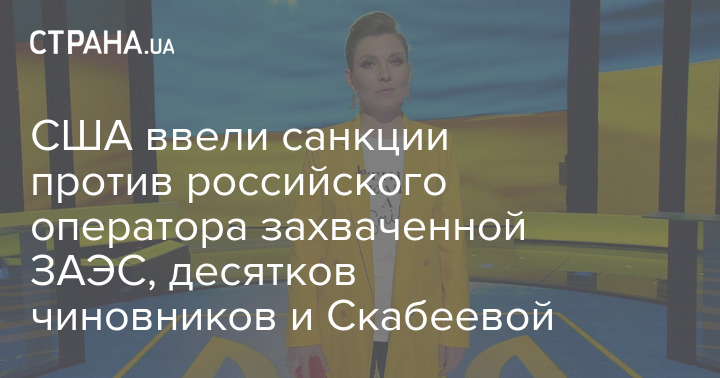 США ввели санкции против российского оператора захваченной ЗАЭС, десятков чиновников и Скабеевой