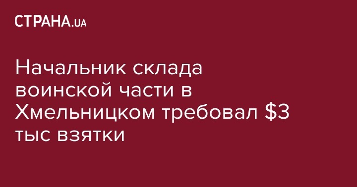Начальник склада воинской части в Хмельницком требовал $3 тыс взятки