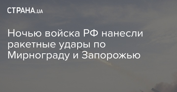 Ночью войска РФ нанесли ракетные удары по Мирнограду и Запорожью