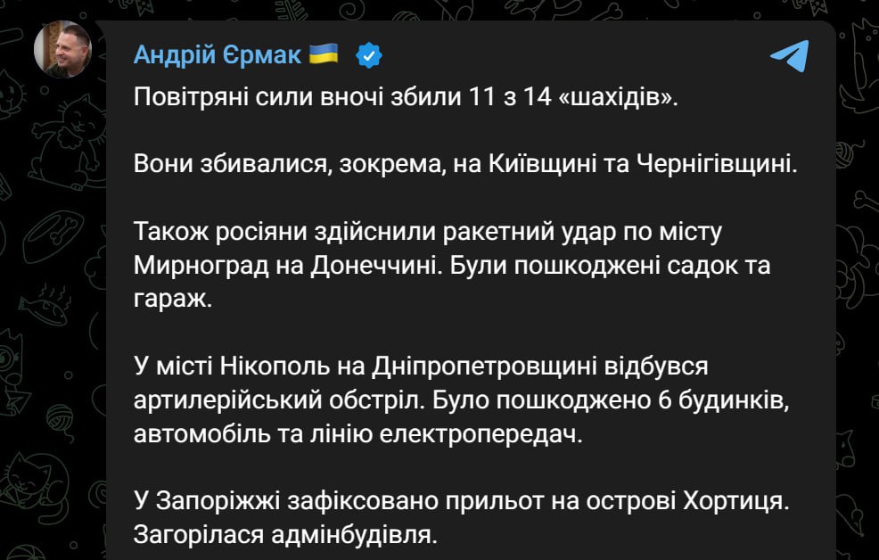 Минувшей ночью был ракетный удар по Мирнограду в Донецкой области. В Запорожье зафиксирован прилет на острове Хортица. Там загорелось админздание.