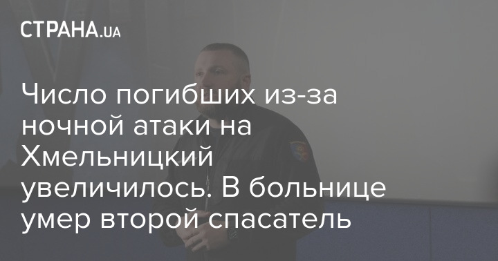 Число погибших из-за ночного обстрела Хмельницкого увеличилось до двух человек. В больнице умер второй спасатель.