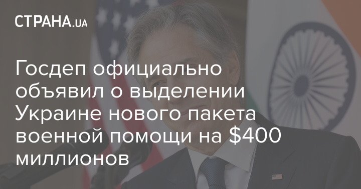 США выделили Украине новый пакет военной помощи на сумму 400 млн долларов.