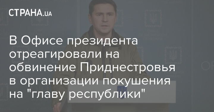 Вслед за Службой безопасности Украины на сообщение о подготовке покушения на руководство непризнанного Приднестровья отреагировали в Офисе президента.