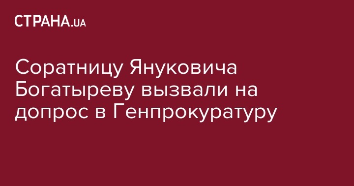"Подозреваемая Богатырева Раиса Васильевна, 06.01.1953 г.р, согласно требований ст.ст.133, 135, 297-5 УПК Украины вызывается 7 декабря 2016 года в 09:30 к следователю следственной группы Генеральной прокуратуры Украины Болячого А.А. в каб.№ 341 по адресу: г.Киев, ул.Московская, 8, для проведения следственных и процессуальных действий в уголовном производстве № 42015000000000824 по ч.5 ст.191 УК Украины (присвоение, растрата имущества, - прим.ред.)", - говорится в повестке о вызове.