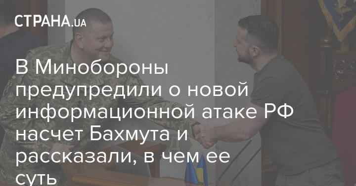 В Минобороны заявляют об "очередной информационной атаке врага насчет Бахмута". Ее суть - в распространении фейков о якобы разных позициях президента, Залужного и Сырского по части решений в вопросе Бахмута.