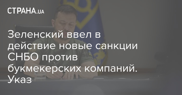 Зеленский ввел в действие новые санкции СНБО против букмекерских компаний. Указ