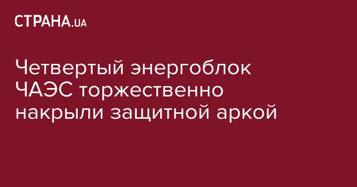 Во вторник, 29 ноября, разрушенный в результате аварии 1986 года четвертый блок Чернобыльской АЭС накрыли новой защитной аркой. Об этом сообщает "Интерфакс-Украина".