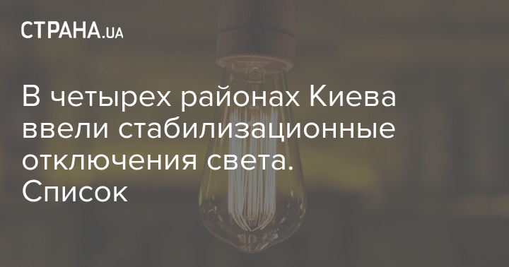 В четырех районах Киева ввели стабилизационные отключения света. Список