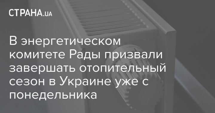 Завершать отопительный сезон в Украине уже с понедельника следующей недели призвал глава энергетического комитета Рады Андрей Герус.