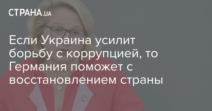 Министр развития Германии Свенья Шульце предложила Украине помощь в восстановлении, но призвала украинские власти лучше бороться с коррупцией.