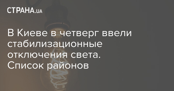 В Киеве в четверг ввели стабилизационные отключения света. Список районов