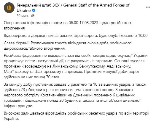 В пятницу, 17 марта, в Украине идет уже 387-й день войны с РФ.