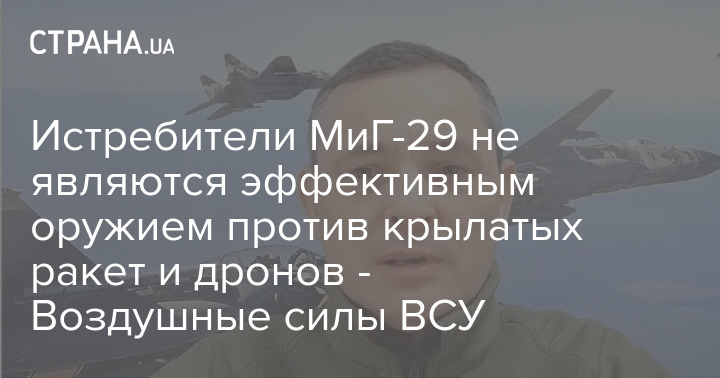 "Советская техника, которая у нас есть на вооружении, именно эти МиГи, не является эффективным оружием против крылатых ракет и дронов. Потому что там морально устарела техника - и ракеты, и бортовые радиолокационные станции. Они не могут эффективно осуществлять эти функции", - сказал Игнат.